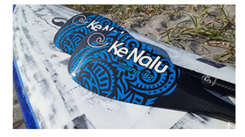 スタンドアップパドル専門のオリジナルブランド "Ke Nalu"。物理学に基づきデザイン・開発されたパドルは、最大限の軽さと耐久性を兼ね備えており、高効率なスピード還元能力を約束する。